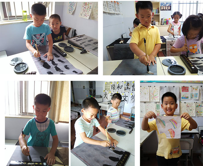 原來的我從未與小毛筆握過手,而現(xiàn)在,我與小毛筆成好朋友了。 其實并不難,只要我們愿意并且大膽接受老師的幫助,毛筆很容易和我們交朋友。 從書寫中我找到了自信 在這支小毛筆陪伴下,我逐漸長大, 在書法教室里,還結(jié)識了這樣一群善良愛學習的小伙伴,讓我每日樂在其中。 從筆畫到簡單的字,再到用宣紙書寫, 這一過程中還有父母的辛勤付出,慈愛勉勵。 是不是字如其人?您瞧,字里行間透出我的個性, 真誠質(zhì)樸包容,當然最重要還有快樂啊 。 小手隨著毛筆的舞動也越發(fā)靈巧有力,學無止境,我要更上一層樓。 我與哥哥一同來到書法教室學習,您看我是不是也很認真呢, 小瓜子點終于可以在格子中排隊了。 我今年三歲多,已經(jīng)連續(xù)兩年從武漢來到北京參加書法教室全天班學習。 每天書寫,指讀經(jīng)典,描紅、彩繪,我的行為習慣越來越好,比以前聽話了, 在這樣的集體環(huán)境中,與小伙伴們在一起相觀而善,媽媽高興地說我進步了。 讀、寫、畫,老師都是因材施教, 幫助我們培養(yǎng)更好的學習習慣及提升我們的專注力。 不論是水寫帛還是用墨書寫,我們只要認真都會有很大進步。 收獲后喜悅的笑容 基本功猶如大樹之根,扎穩(wěn)根基,才能枝繁葉茂。 雖然有時也會累,但是在老師的幫助下,持續(xù)學習, 相信我還是有很大潛力的,感恩父母智慧的抉擇。 基本筆畫一點點在變化,我也悄然一點點長大, 縱使學習路上放慢腳步,也不能著急, 只要不停滯學習,就會穩(wěn)穩(wěn)當當前行。 這是我人生起步的第一幅作品 我從三歲小毛娃到書法教室學習,至今五歲多。 在每天的學習中,我們除了書寫還有讀誦經(jīng)典 及學習中華德育故事以及午后的課外活動等,令我收獲很多, 經(jīng)典的讀誦學習讓我明理,性情變溫和了。 午間游戲活動讓我肢體更協(xié)調(diào),我們還學習參與做家務, 在家里讓我們也能成為媽媽的好幫手。 我也是三歲多與姐姐一起到書法教室學習,現(xiàn)在我已經(jīng)五歲多了。 我們在書寫中也學習了做人的道理, 要守規(guī)矩,互相協(xié)調(diào),還要穩(wěn)重。 四歲時,在媽媽的明智抉擇下,我與媽媽一同到書法教室學習。 我參加的是全天班,從學習握筆開始,一點點寫大瓜子點, 小手越來越有力量,別看我個子不大,寫出的字還不小呢。 雖然我的書法學習還沒到一年,對自己來說也小有收獲了,我要繼續(xù)前行。 楊老師書法教室歡迎您的到來 *-*-*-*-*-*-*-*-*-*-*-*-*-*-*-*-*-*-*-*-*-*-*-*-*-*-*-*-*-*-*