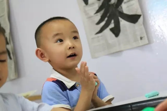 但他對顏色有很高的敏感度,我們在教學中就多以彩繪來吸引他,學習搭配顏色,練專注,學習做事的規矩。再以讀經、描紅、書法來輔助教學。經過半年的努力,現在辰辰能夠和大家一起正常上課,專注度和定力比原來進步了很多,生活習慣有了很大的改變。