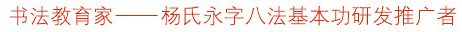 根據書圣王羲之啟蒙老師衛鑠夫人提倡的初學由大字入門,重視多骨豐筋的習書理念,經歷數十年的書寫、歸納、改進,楊老師研發的「永字八法基本功」大字學習法,已利益海內外數萬人。學員小至五歲孩童,年長至七旬老人,甚至不會漢語的外國人,都能寫出力道豐勁的書法作品。如今學習者遍布中國、新加坡、印尼、日本等世界多國。
