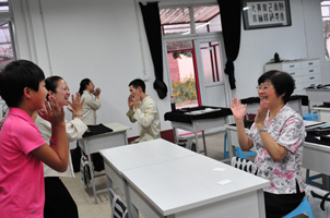 接下來,全班學員登臺,獻上他們新學的手語舞《幸福的臉》。楊老師也加入其中,氣氛歡快熱烈,師生其樂融融,場面溫馨至極。