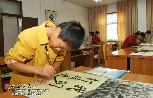 或許老師看出了我的感受,但老師并沒有批評我,只是建議我,只注意自己筆下的一筆一劃,在下筆之前想好要寫的內容,然后慢慢落筆,完成之后也不要修改,再將注意力集中到下一個筆畫,每次都只集中在當下那個筆畫,不必有其他的雜念和顧慮。于是我試著這樣去做,一開始還不是很習慣,經常會拘泥于上一個沒有寫好的字,有時候又會因為前一個字寫得不錯,而希望下一個字寫得更好,因此一張完整的作品中,總是先寫的字較好,后寫的字較不穩定。但是我還是持續按照老師的方法進行練習,把注意力集中到眼前的一筆一劃上,漸漸也就忘記了時間。幾個月之后,我的注意力基本能夠集中到了當下寫的這個字上,整張作品也漸漸產生協調感,水平也漸漸提升。這樣堅持了三年,在2009年,我參加首屆「和諧中國」書畫大賽,獲得了青少年組唯一的一等獎。