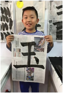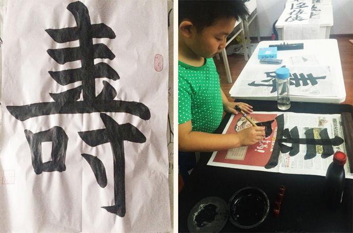 他的父母非常重視書(shū)法的學(xué)習(xí),每周都按時(shí)來(lái)教室學(xué)習(xí)書(shū)法。