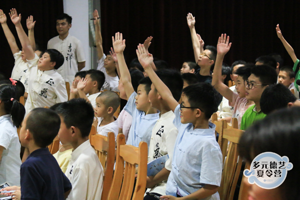 ▲ 說說你的夢想 志遠班的同學分享的課后思考: 志遠班 謝晨垚: 七月十五日晚上,謝奶奶在我們班上了「珍惜當下,活出精彩」生活教育課。 這堂課,我最大的收獲是懂得了要好好珍惜時間,合理安排時間,特別是要懂得利用零碎的時間。 有一句善意的謊言 —— 「努力,不一定有所成就」,恰恰相反,一個人只要能充分利用好零碎的時間,努力學習,一定能有所成就。就像我們寫書法,如果能充分利用零碎時間,日積月累,堅持十年,相信一定能練出一手好字。 志遠班 林智榮: 有一句話讓我印象深刻——「改變,不能接受的;接受,不能改變的?!? 我把它歸結為「不斷提升」和「隨遇而安」這八個字,就拿現在在北京誠敬仁通州小院學習來說,我們就應該爭取一切的力量讓自己更加強大,能力擁有得更多,更有深度。來到小院我會一心一意做好該做的事,與小院融合,與萬事萬物融洽相處,開心地充實每一天,既來之,則安之,讓夏令營煥發精彩,美麗無比! 志遠班 高友權: 謝奶奶以《西游記》的主題曲來引出唐僧要裁員的問題。同學們都反應激烈,有的說裁沙僧,有的說裁豬八戒,又有的說裁白龍馬,奶奶聽后笑瞇瞇地說:「你們當中只有一個說的我同意,要裁就要裁沙僧,因為他只是挑個擔,而挑擔是誰都可以干的,把他的活分給其他人即可,所以要裁就要裁沙僧?!? 又問我們「你們為何不裁孫悟空呢?」 「是因為他每次都可以在危難的時候救出師父」,我們齊聲道。 奶奶笑著說:「對,孫悟空本領大,實力強,所以沒人想裁掉他,而沙僧,沒有特有的本領,團隊的事依舊可以運轉,所以才把他裁掉。以后你們要有實力,成為不可替代的那一個,不然就要被歷史的車輪拋棄,在激烈的競爭中被淘汰。」