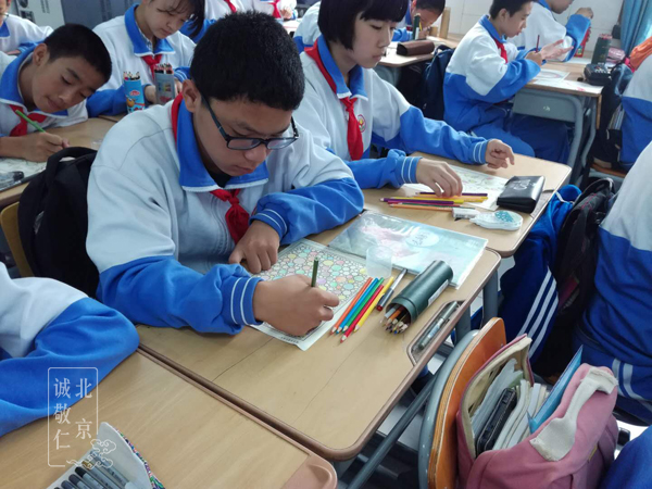 愛說話的殷同學,幾乎每5秒鐘就跟同學說話,挑別人毛病,通過三次彩繪課程,他可以慢慢延長到10秒、60秒、10分鐘、20分鐘,都可以安靜專注地彩繪。 王同學也是話多的孩子,這三個月的彩繪、描紅學習讓他能夠控制自己。前不久他還申請多領了幾張描紅,說周六日想在家描紅,他特別真誠地對末學講:龐老師,我現在廢話少多了,能控制自己了。 四班有一位女生,上課愛走神,偷著吃東西,哼唱小曲,當被提醒時,她會用仇視的眼神瞪著老師。了解到這位學生在家很叛逆,媽媽不敢管她。但末學觀察她,發現她愿意彩繪、專注地欣賞《德育動漫》、積極認真描紅,于是末學心里有了底,課下找她好好談談心,沒想到她的態度很恭敬,能接受老師的勸導了!臉上也露出往日難得看到的微笑!
