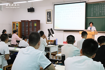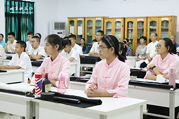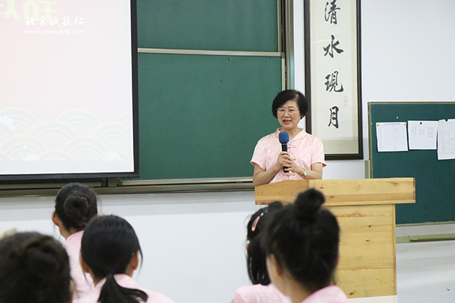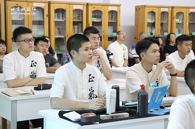 楊老師會篆刻,時間比較短,只有30年(笑)。我的書法從五歲練習,一直到現(xiàn)在50多年沒有斷過。你們都要能傳承。 在新六藝,如果你能練就好的文筆,能寫出好文章,可以流傳多少年?你們看《古文觀止》里面春秋、漢唐時期的文章都可以流傳到今天。王羲之的《蘭亭集序》也是,雖然是后人臨寫的,但到現(xiàn)在一直被大家欣賞學習。好好學習,你的才藝德能是可以被流傳下去的。 我希望以后你們一出手就要有太極功夫,一拿筆就能寫字,會主持、會朗誦。明天開始,早晨你們就要練習大聲讀經(jīng),一個人的聲音會影響一輩子的命運,你看國家領導人講話,非常渾厚有力。如果丹田有力量,說話受人歡迎,就有攝受力,能幫助你和人很好地溝通,這非常重要。 再過五十年,你們可能是市長,是一方重要的人物,所以今天要好好學,才能有以后這個身份需要的實力。