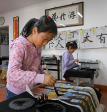 書法教室的師生共同營造出來的濃厚書法學習氛圍,淡淡的墨香,優雅的琴聲,溫馨的笑容、專注的眼神形成了一道道優雅的風景線,編織成楊老師書法教室獨特的德藝書法文化。