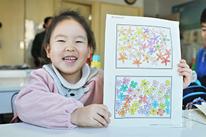 學(xué)員:慧慧 時(shí)年4歲 自3歲起定期到亞運(yùn)村書法教室學(xué)習(xí),參加全天課程1年