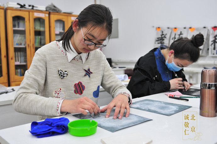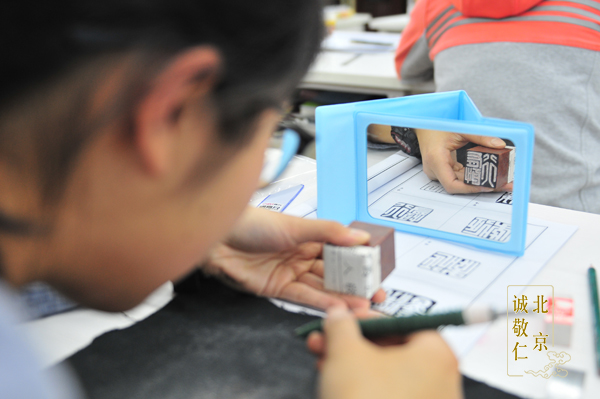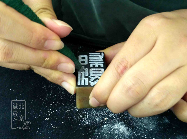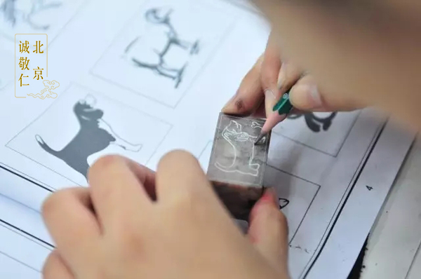楊老師教授的刀法重視果斷、力度、深厚,所以習刻當中,初學不能有太多顧慮,把基本功學到位,以后刻篆字就能駕輕就熟,順手麻利。