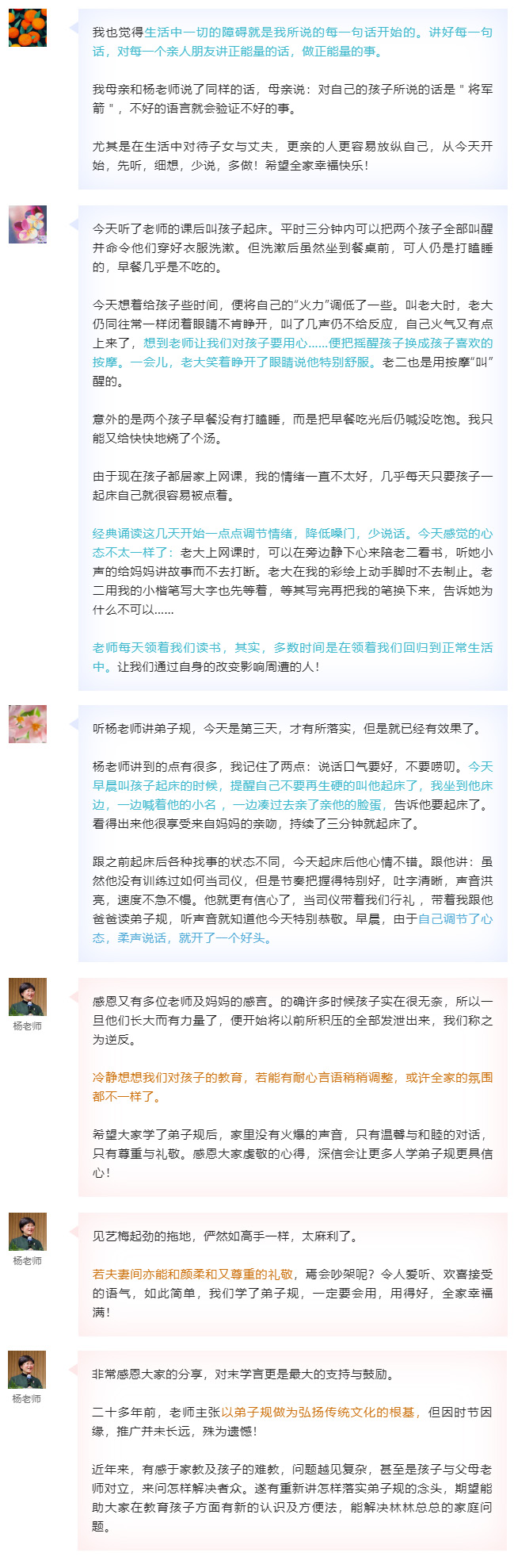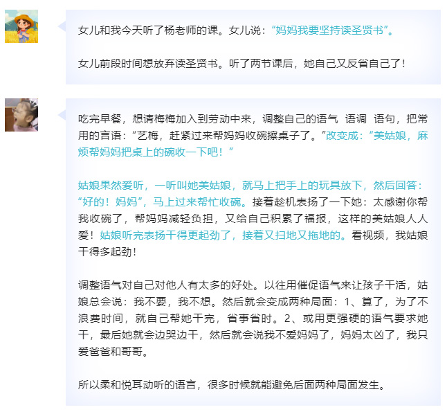父母家長能先學習,先力行,才是最實際的家庭教育,否則,孩子讀經再多也進步不大,因為抵不過父母的言行影響。
