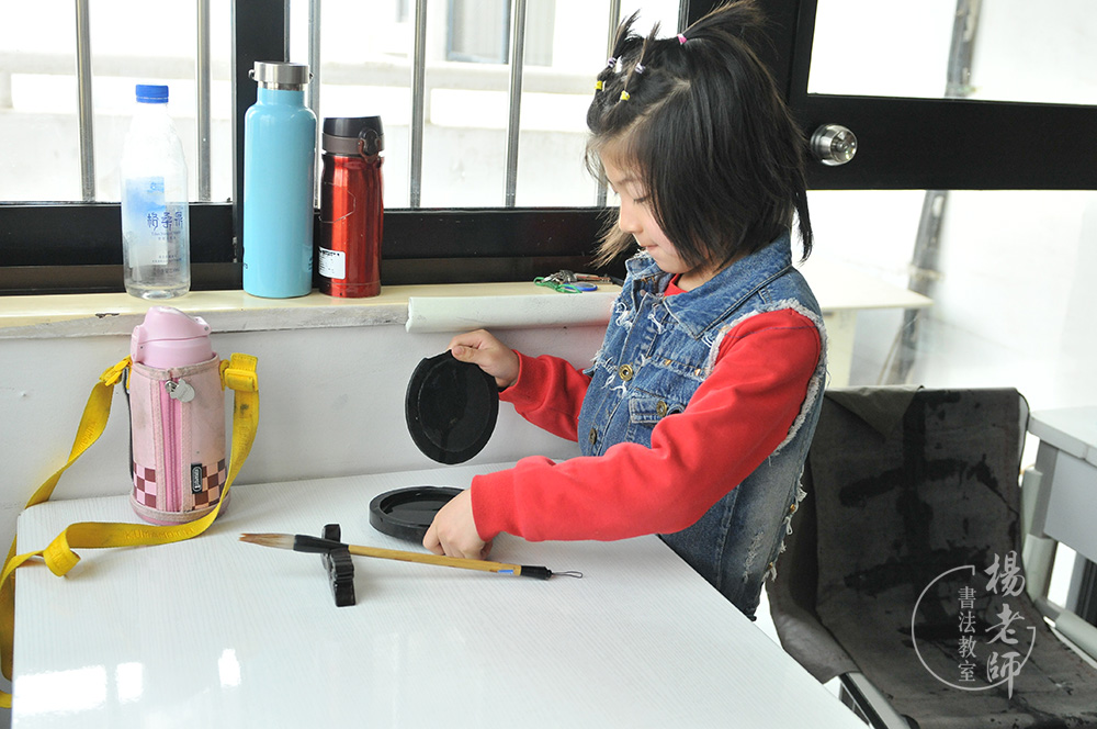 還沒進入「楊老師書法教室」學習的時候,我想著給女兒小草報個舞蹈班和英語班,每當看到別人家孩子學這個學那個,總想著孩子不能輸在起跑線,我也應該讓小草學點東西。那時小草的姐姐毛豆到楊老師書法教室有一段時間了,有一次和毛豆姐姐一起出去玩,回來的路上姐姐認出了牌子上的字,而她卻不認識,回家就問我為什么毛豆姐姐認識那么多的字?我說因為毛豆姐姐現(xiàn)在在書法班學習,可能她學過那些字吧。