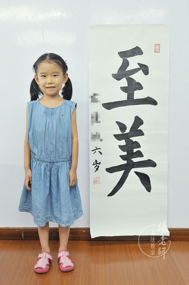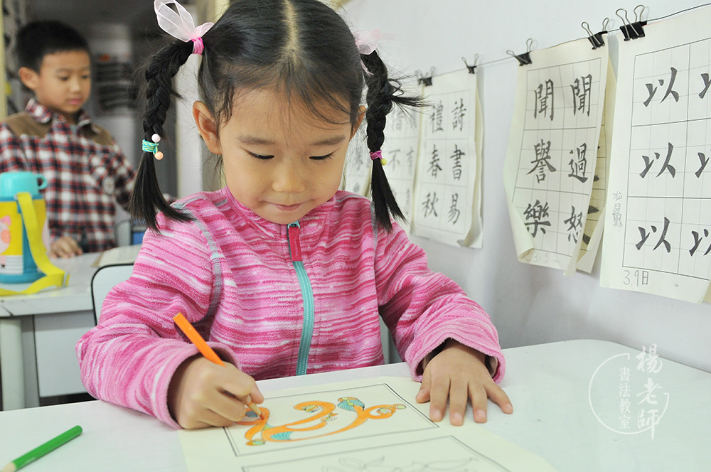丫丫上了兩年半的公立幼兒園。近兩年,在「楊老師書法教室」幼兒書法啟蒙班學習,前一年半均是一周來一天。直到大班的最后半年,才完全轉入全日制。讓我意想不到的是,丫丫在這短短半年中取得的進步,超過了之前的兩年半。