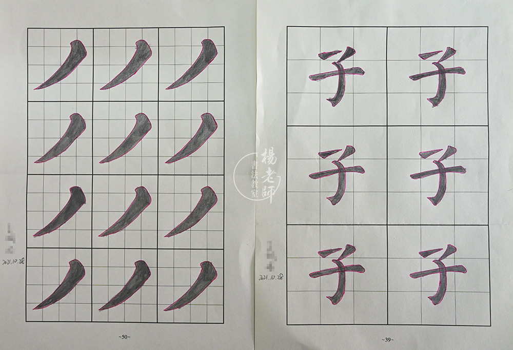 這幅是十月份的描紅作業,線條已然很是均勻,沒有再描出邊框的情況出現,頁面干凈整潔無擦痕。