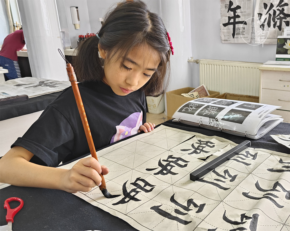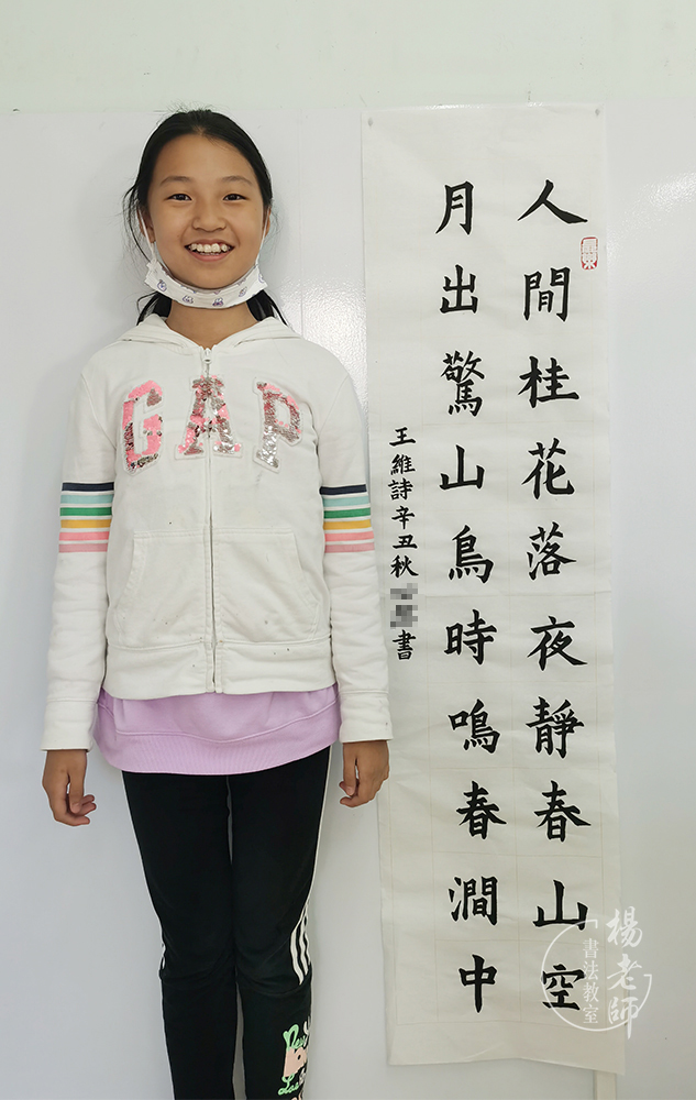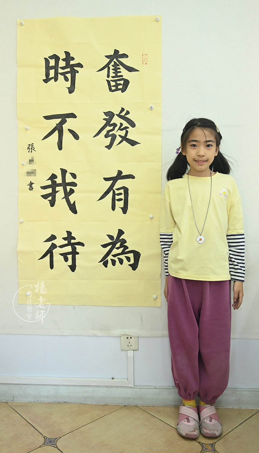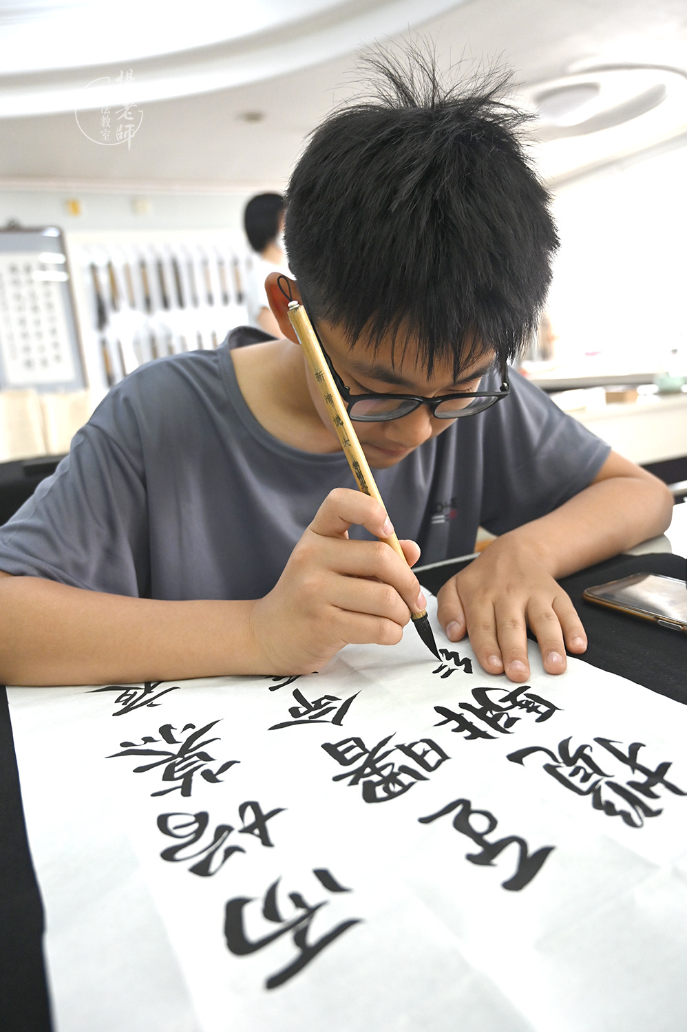 我在書法班學習感覺時間過得很快,兩個小時轉眼即逝,一心就專注在所學之字上,偶爾會有開小差的時候,有時經過老師不經意的提示,心很快就定下來了。老師不僅教大家寫字,也會對孩子們做人、做事有所引導,長時間在這里學習的孩子們會有很多變化讓家長欣喜。我在這里學習對于女兒也是有潛移默化的影響,她看到我認真學習的樣子,女兒寫字也越來越踏實、認真了,回到家我向她請教哪里寫的不好,她還會認真幫我指導并示范,我們母女一起學習互相促進,同時也更增進了母女感情,我非常感謝楊老師書法班的每一位老師,他們每個人臉上都帶著微笑,每次上課都是我最開心的時刻,在這里接受的是正知正見、老師的字也是鏗鏘有力,總之,我感覺在這里學習就是一種享受。