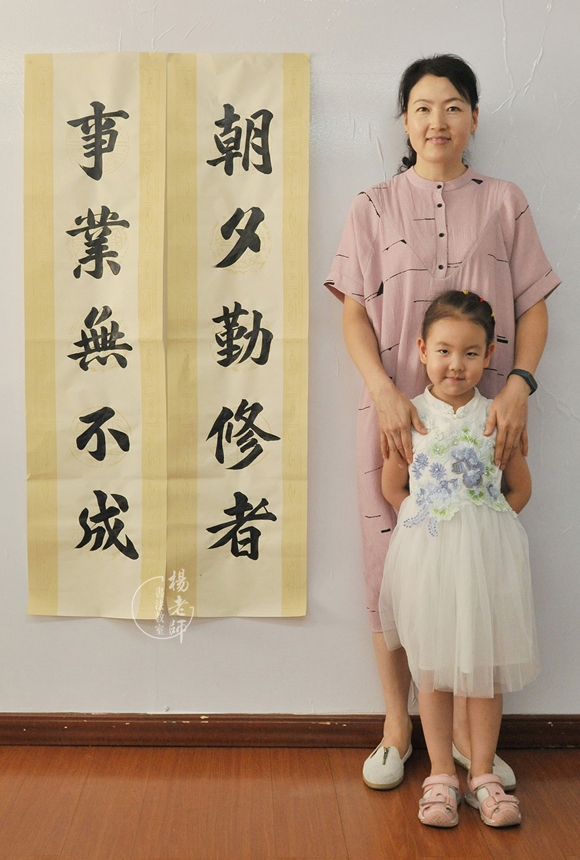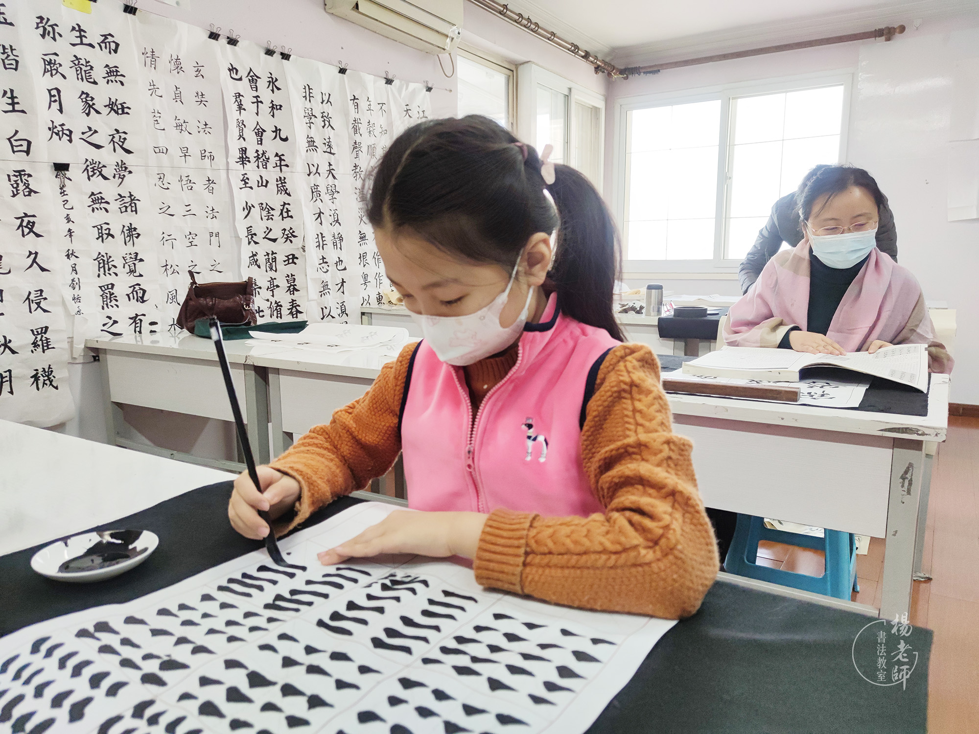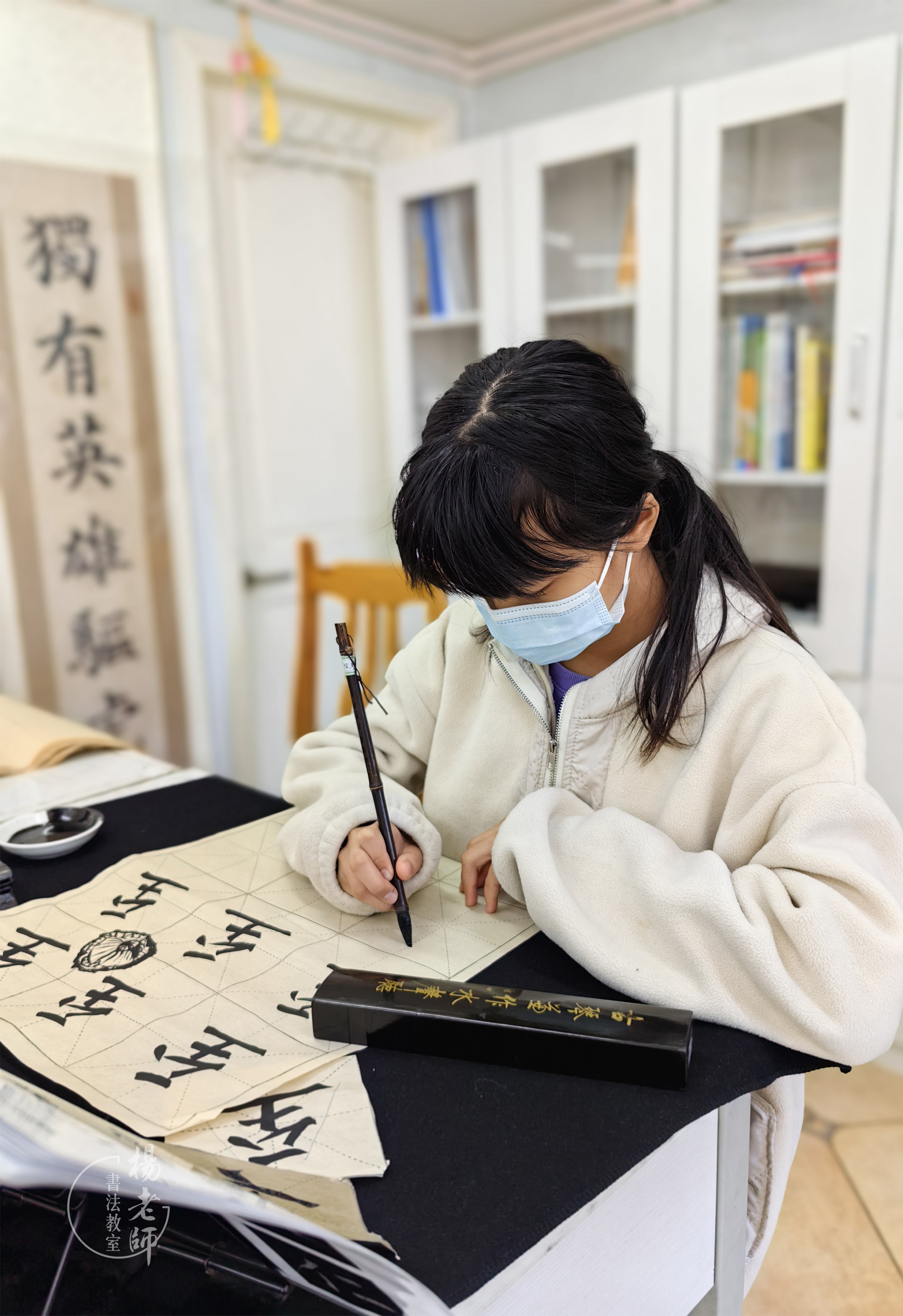 到「楊老師書法教室」學習軟筆書法是我期盼已久的時刻,我的女兒在這里已經學習7個年頭了,完成了楷體榜書的學習,進入大楷《九成宮》的臨習,由于疫情三年沒有持續練習,孩子的學習興致有所減弱,我為了激勵孩子繼續認真學習書法,同時也是完成我自己的小夢想,今年春天我終于下定決心為自己報班學習軟筆書法。