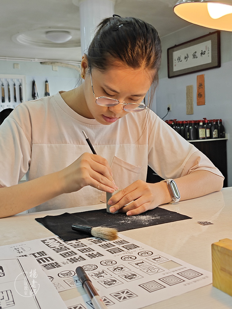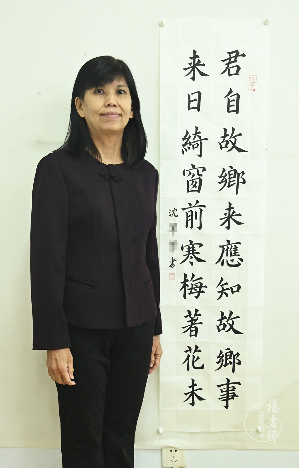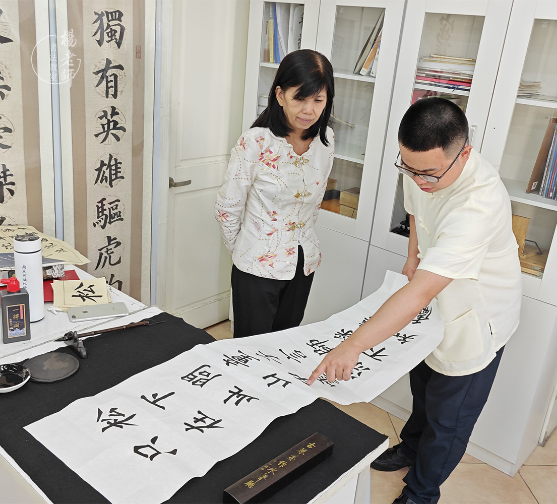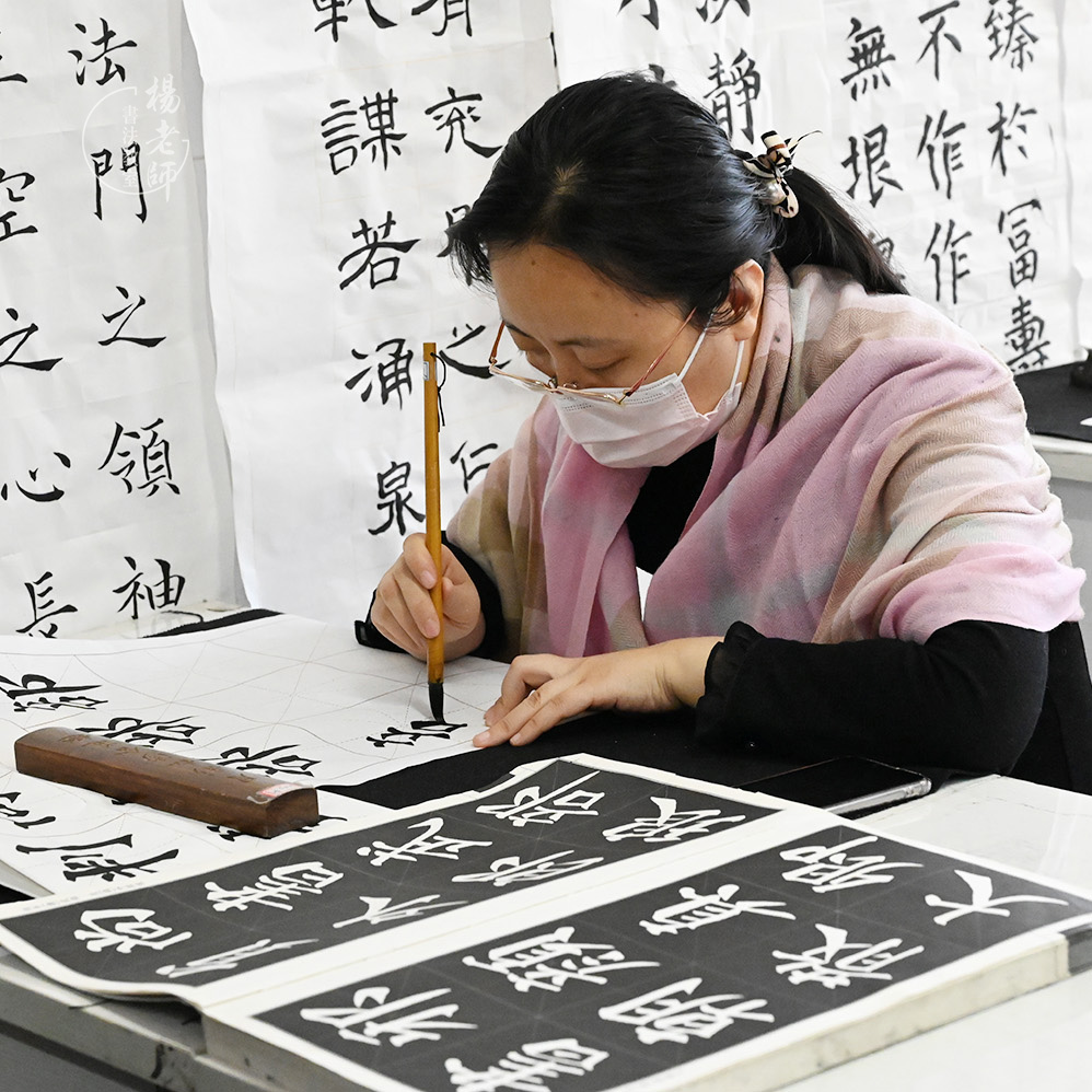 到「楊老師書法教室」學習軟筆書法是我期盼已久的時刻,我的女兒在這里已經學習7個年頭了,完成了楷體榜書的學習,進入大楷《九成宮》的臨習,由于疫情三年沒有持續練習,孩子的學習興致有所減弱,我為了激勵孩子繼續認真學習書法,同時也是完成我自己的小夢想,今年春天我終于下定決心為自己報班學習軟筆書法。