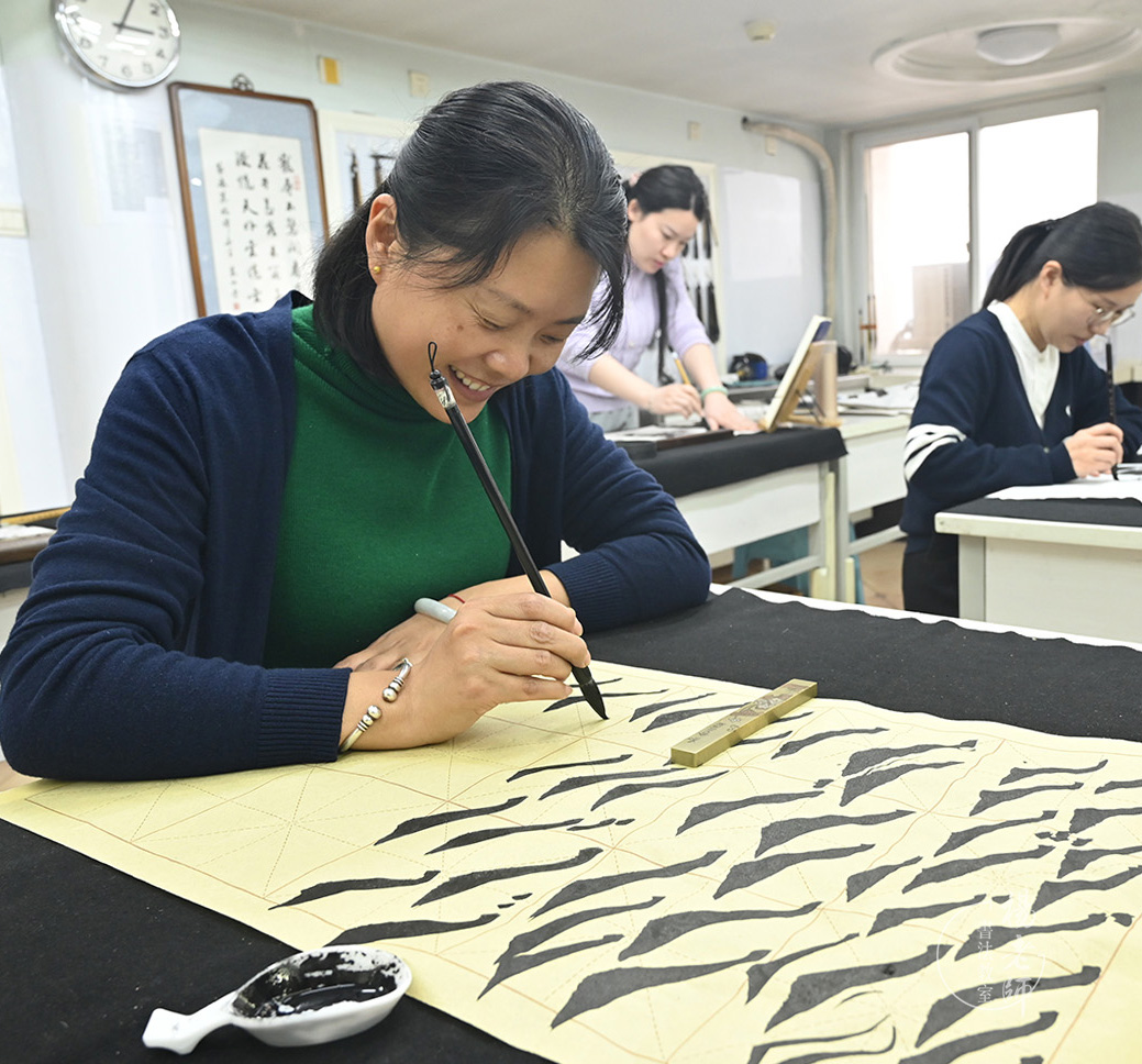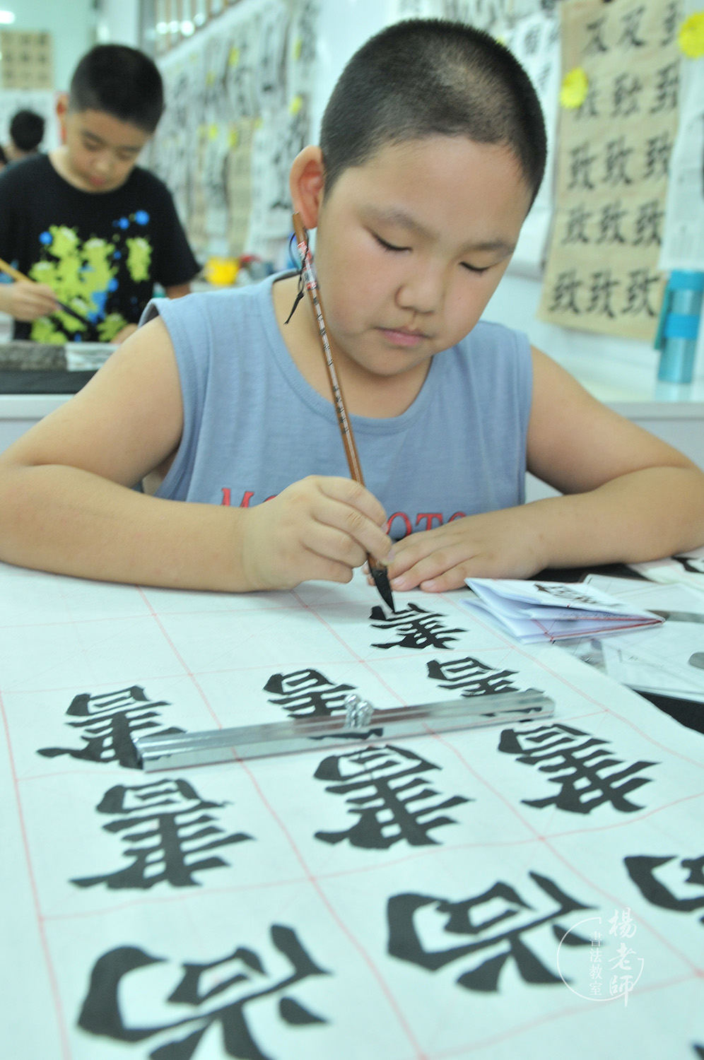要想寫好毛筆字,首先需要把心靜下來,站好姿勢,把握好握筆姿勢,才可能寫出端正好字,老師也是嚴格要求,把控好每一個字才能過關。