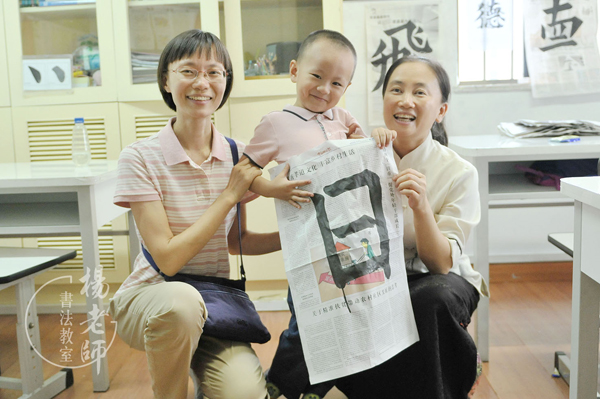 一天晚飯后,小星星自己坐到桌前開始描紅。一會兒,奶奶過來陪他,于是一邊描,小嘴巴一邊開始說:「奶奶您看,先勾個邊框,邊框就好比是國界,不可以出國界;然后再描里面,一筆一筆描,要拉的直直的,不能毛毛刺刺的……然后里面要是有小的白白的,你就再給它補補……這里不能出來了,出來就好比成了一個大大的肚子……」書法教室的小學生,回家儼然成了個小老師,說的奶奶樂得合不攏嘴。