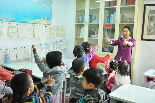 在家散漫慣了的孩子,進入課堂很難將心放在學(xué)習(xí)上,經(jīng)常會出現(xiàn)抱怨或不喜歡學(xué)習(xí),吵鬧著要回家的學(xué)生。這時,那些掛在墻上的作品就成為了榜樣,老師會指著那些字問: