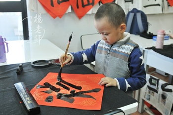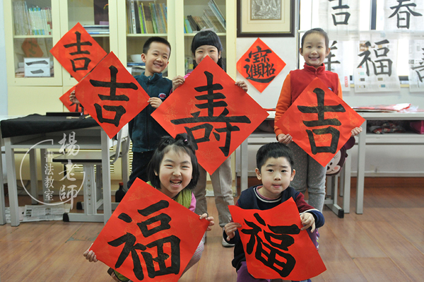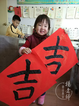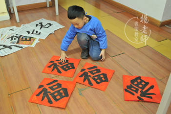 春節集福開始啦!「楊老師書法教室」這兩天格外熱鬧,紅色的祝福貼滿了教室,烘托出春節即將到來的火熱氣氛。
