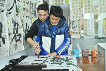 “紅紙一分鐘,報紙十天功。”正在報紙上練習,熟練之后,從容地書寫于紅紙,最后和老師選出最滿意的作品,過年看望長輩時送給老人家,恭祝新年快樂!