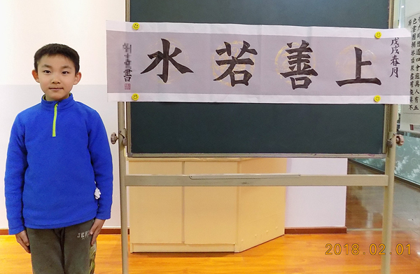 熱愛閱讀。無論學習書法還是閱讀,老師鼓勵他凡事用心就會好,他很開心,答應老師要多讀好書,學習為人處事的道理,「君子一言,駟馬難追。」