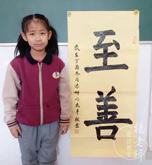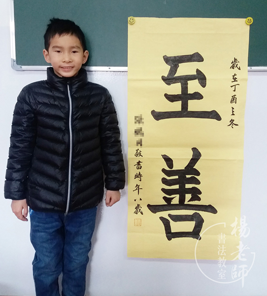 剛上一年級(jí)的致遠(yuǎn)同學(xué),從名字便可看出父母對(duì)他的期望如“寧?kù)o致遠(yuǎn)”般,帶著這一期許,他來(lái)到了「楊老師書(shū)法教室」開(kāi)始修煉靜心養(yǎng)性。對(duì)于開(kāi)朗活潑的小致遠(yuǎn),與大多數(shù)同齡孩子一樣,只能堅(jiān)持半節(jié)課的安靜。但經(jīng)過(guò)一學(xué)期的書(shū)法學(xué)習(xí)后,心越來(lái)越靜了,在班里還成為了“金牌小司儀”,帶領(lǐng)其他同學(xué)洗筆洗硯臺(tái)。