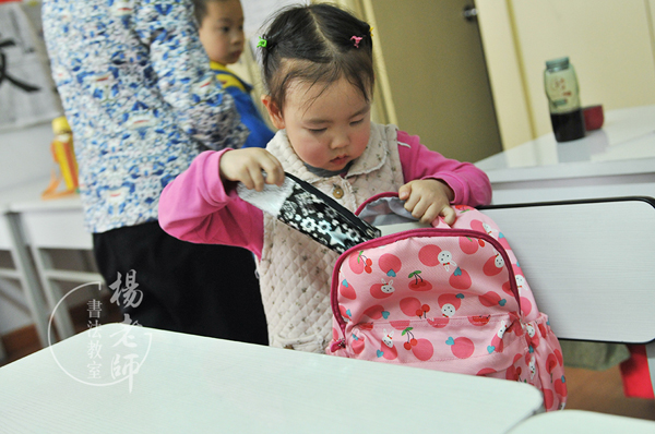 沒來(lái)書法教室前的慧慧,雖然愿意自己做事,但條理性很差。比如在家脫衣服,她會(huì)自己疊一疊,但很不認(rèn)真,窩成一個(gè)疙瘩是常有的事。襪子總是“分家”,不是找不到玩具就是找不到經(jīng)書。你一問她,她會(huì)很不耐煩地說不知道。到書法教室才幾個(gè)月的時(shí)間,不僅能整理衣服,還會(huì)收拾自己的書包。就連「讀看畢,還原處」也做得很好。現(xiàn)在如果我的衣服沒疊整齊,她會(huì)義正言辭地說:“媽媽,明天衣服寶寶不和你做好朋友了。”我欣然接受了。