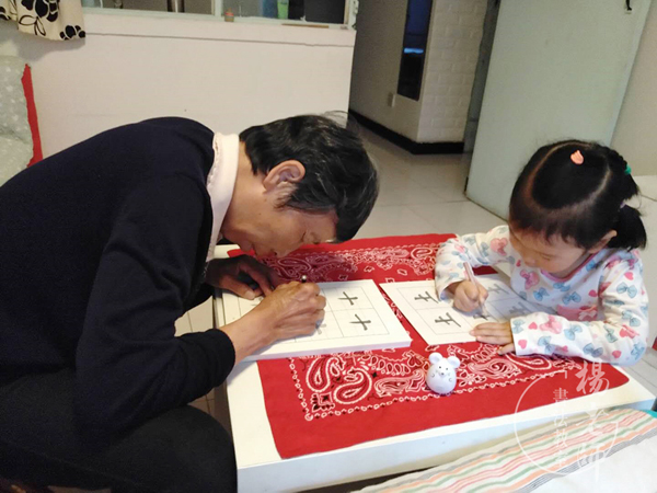 描紅時,祖孫二人偶爾抬頭相視一笑,幸福的波光在心湖里瀲滟。原來真正的愛是彼此策勵,共同進步。多元德藝樂天倫,為含飴弄孫注入了時代的新元素。祖輩沉穩、剛健,孫輩蹣跚學步,一起走一條靜定、愉悅的路……