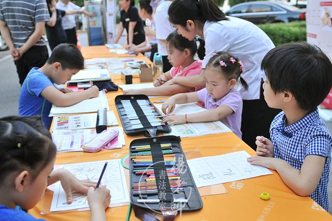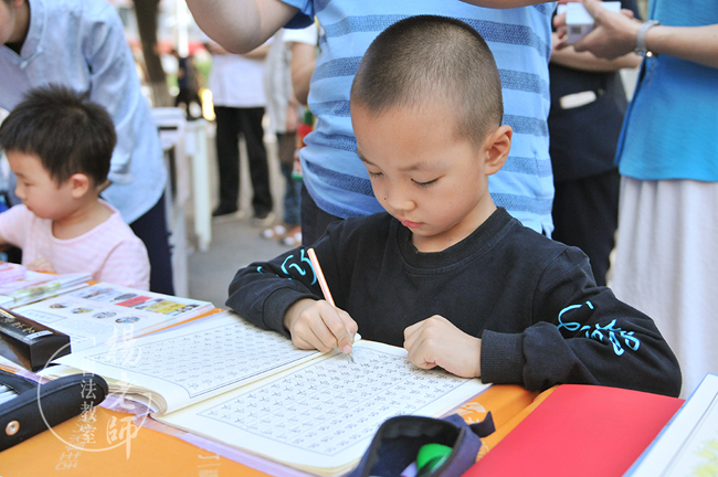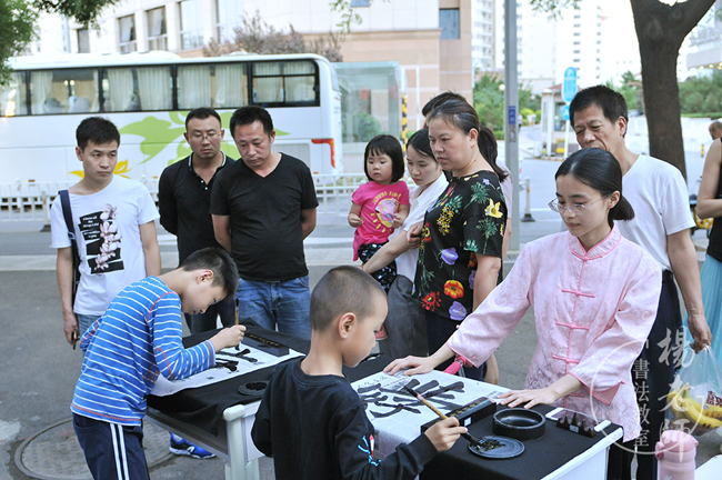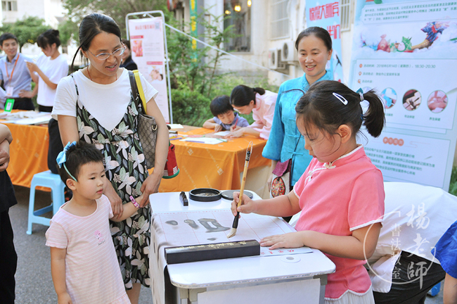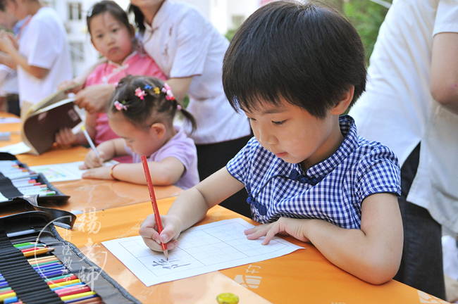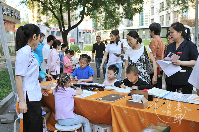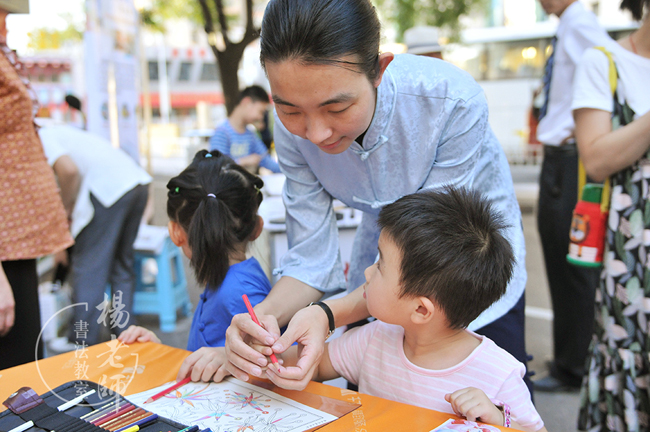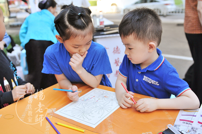 「楊老師書法教室」的課程豐富多彩,描紅、彩繪、硬筆,軟筆等樣樣吸引著來(lái)往的人群,并不斷有同齡的小朋友踴躍參與。