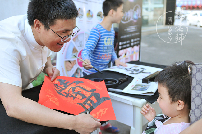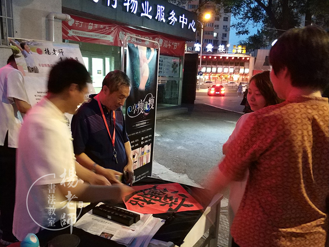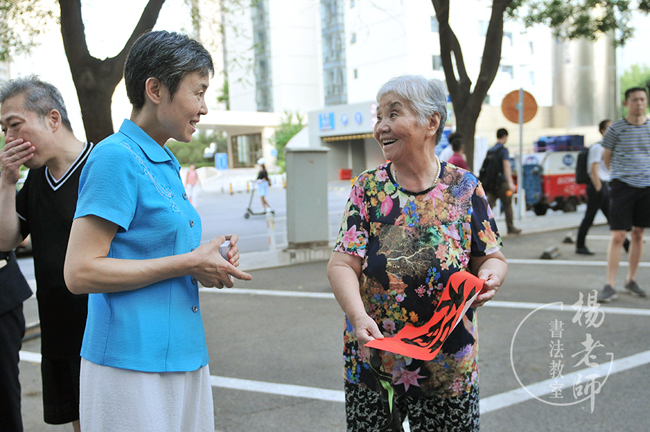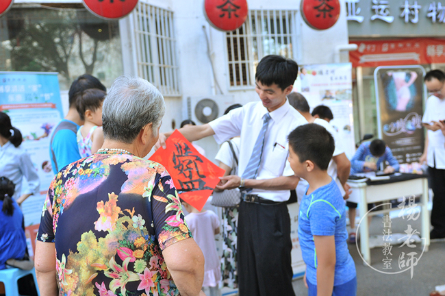 一位奶奶樂(lè)滋滋地拿著“福”字,經(jīng)介紹才知道,原來(lái)書法教室就在自己居住的小區(qū)里,喜出望外,表達(dá)了將來(lái)學(xué)習(xí)傳統(tǒng)文化及豐富晚年文藝生活將更便捷的心聲。