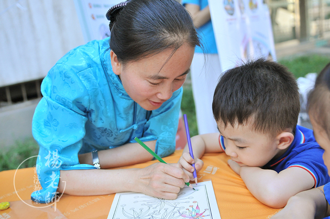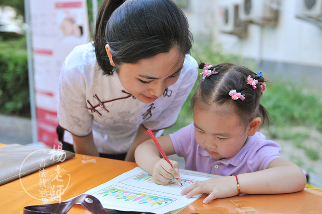 四歲的荷荷,居然坐定鬧市,在張老師多姿多彩的創(chuàng)意下,穩(wěn)穩(wěn)當(dāng)當(dāng)?shù)夭世L著,足見她平時(shí)在教室里穩(wěn)扎實(shí)打的定靜功夫。