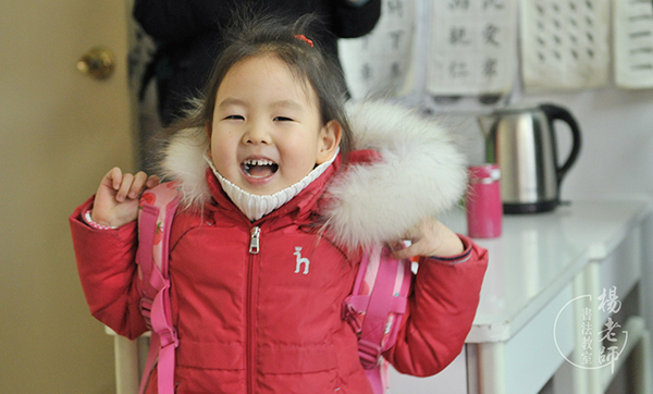 學(xué)習(xí)書法大概兩周后的一天下午,她放學(xué)回家一臉嚴(yán)肅地說:“媽媽,從明天起我再也不能哭了?!薄盀槭裁茨??”“夏老師說,如果我再‘下雨’,就不教您寫大字了?!蔽倚闹胁唤潎@書法教室的老師們真有智慧,有了親師通力合作,效果很好,真心感恩「楊老師書法教室」的老師們。