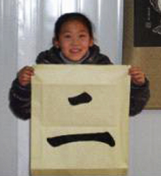 那夜老師和孩子靜靜地聊著,又一次幫孩子樹立信心,孩子志向找回來了。第二天重新來到書法班,成功地寫出了「下」字,對書法又有了信心。孩子心中當(dāng)傳統(tǒng)文化老師的心愿再一次生起,而且做了勝利的手勢,說:「寫好書法,那是必須的。」