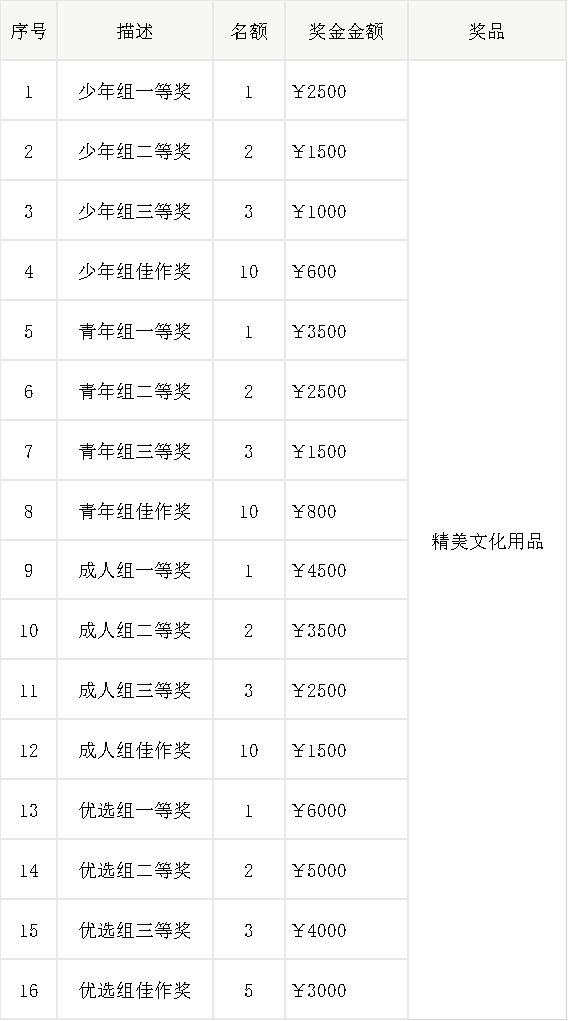 - 優(yōu)選組 參賽者 報(bào)名費(fèi):¥600元