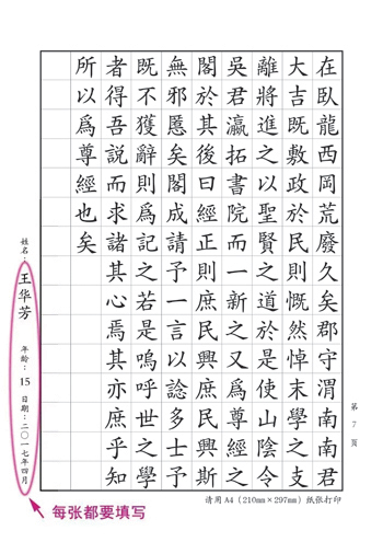 - 書寫格式見下圖(注:每一頁均須完整填寫姓名、年齡、日期)。